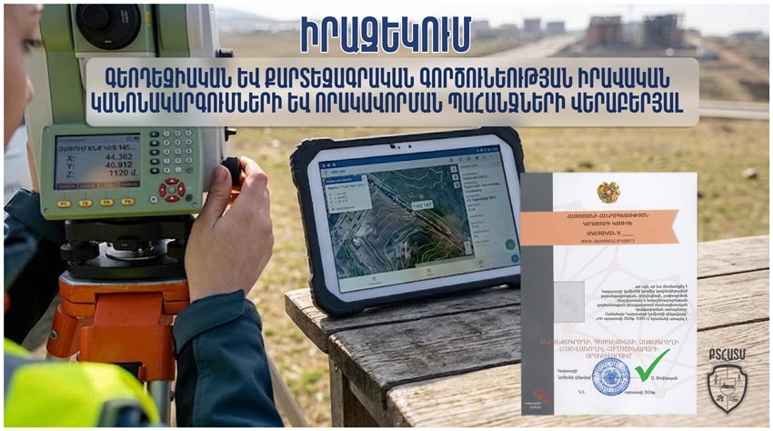 ՀՀ քաղաքաշինության, տեխնիկական և հրդեհային անվտանգության տեսչական մարմինը, հանդիսանալով գեոդեզիական և քարտեզագրական գործունեության նկատմամբ պետական վերահսկողություն իրականացնող մարմին, հարկ է համարում իրազեկել ոլորտի սուբյեկտներին և հանրությանը հետևյալ իրավական կարգավորումների մասին.